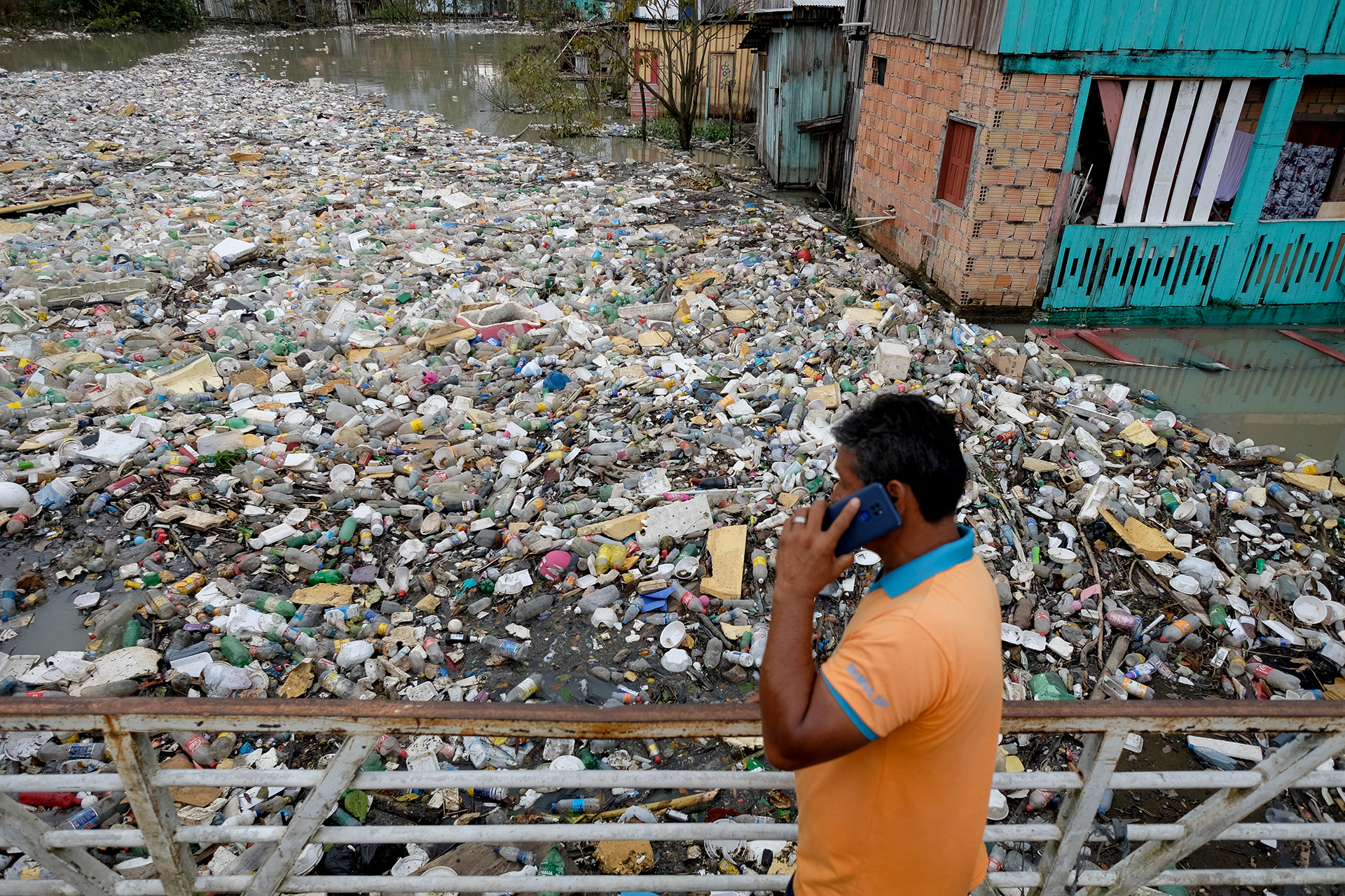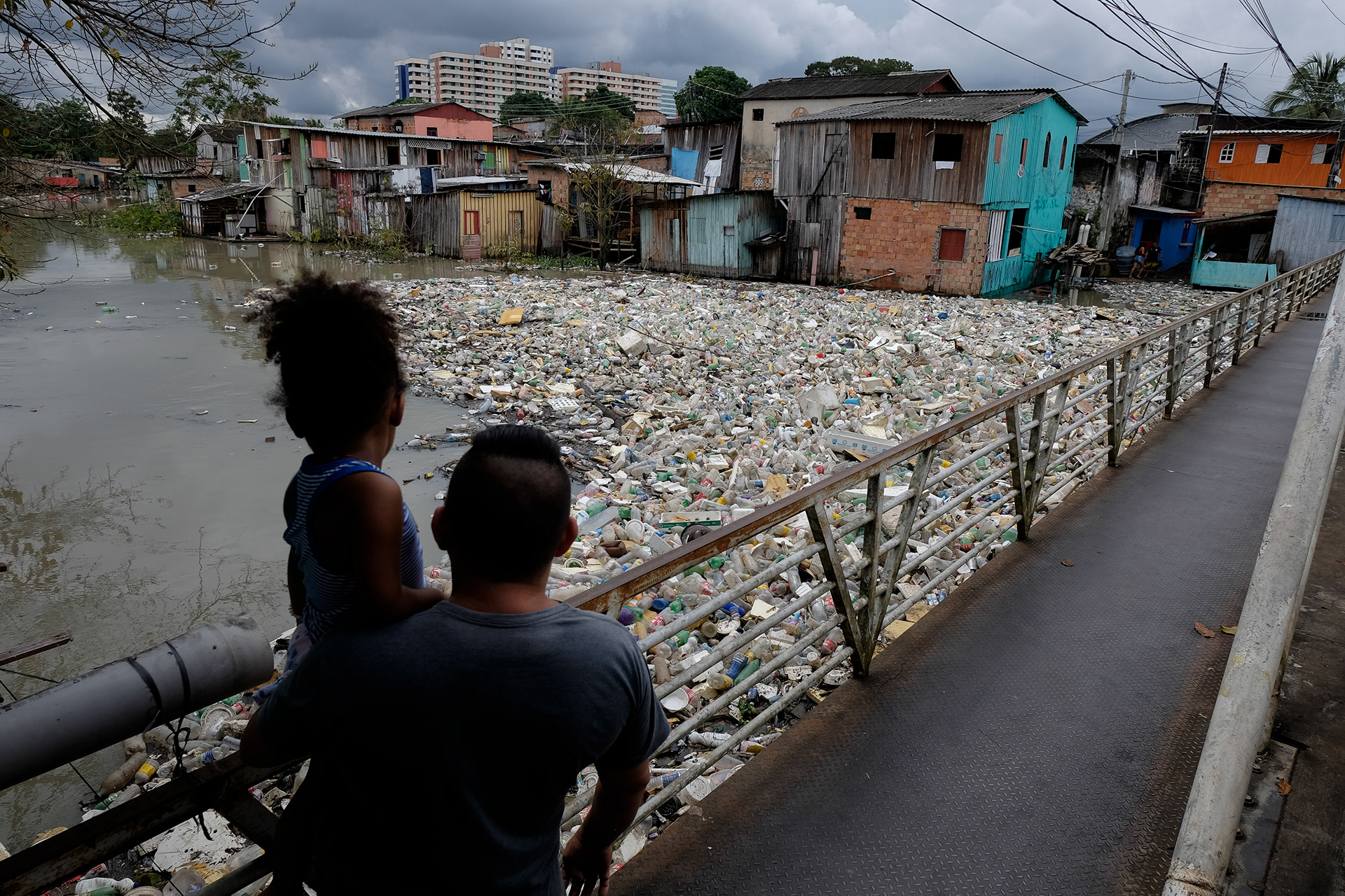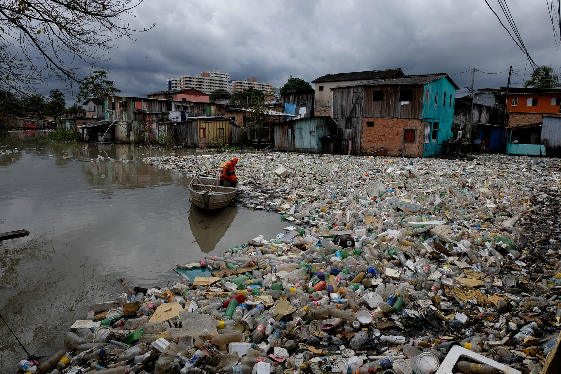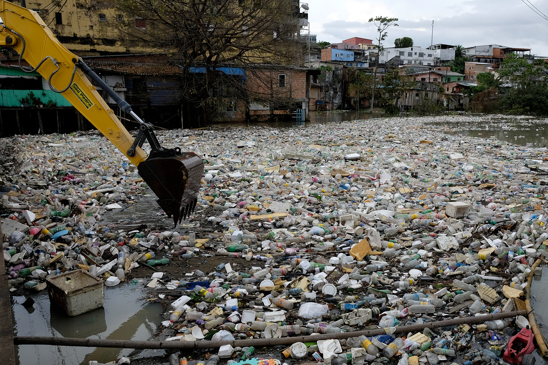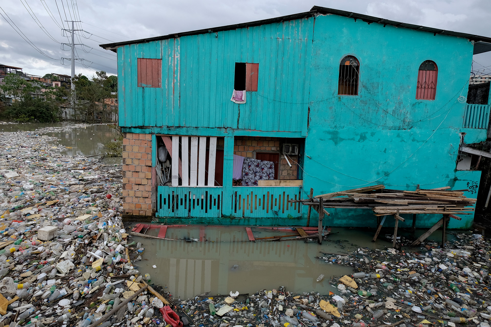 In Manaus, a carpet of garbage formed in the creek that cuts through the São Jorge neighborhood in the Amazonian capital, on World Environment Day. Work done for the Reuters agency.